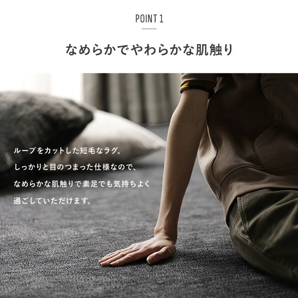 床暖房やホットカーペットの熱を通しやすい構造で、冬はぬくもりを、夏はさらりとした感触をキープ。季節をまたいで快適な足元環境を整えます。