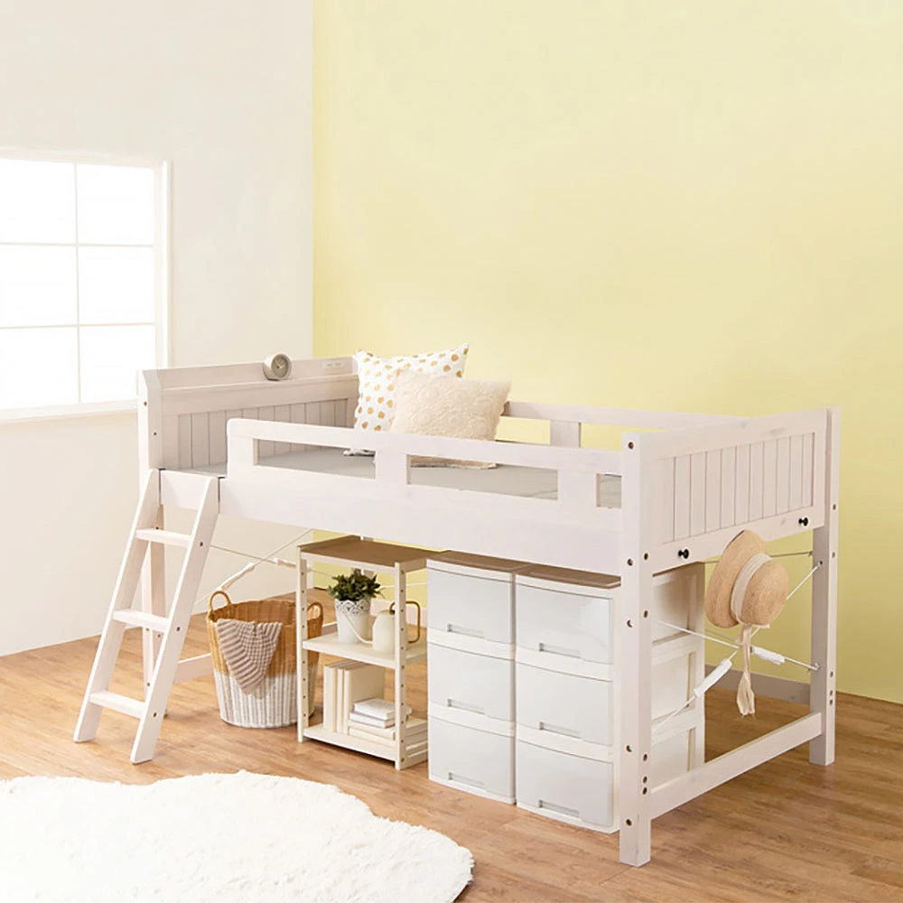 高さが選べる木製ロフトベッド シングル ホワイトウォッシュ シングル ハイタイプ