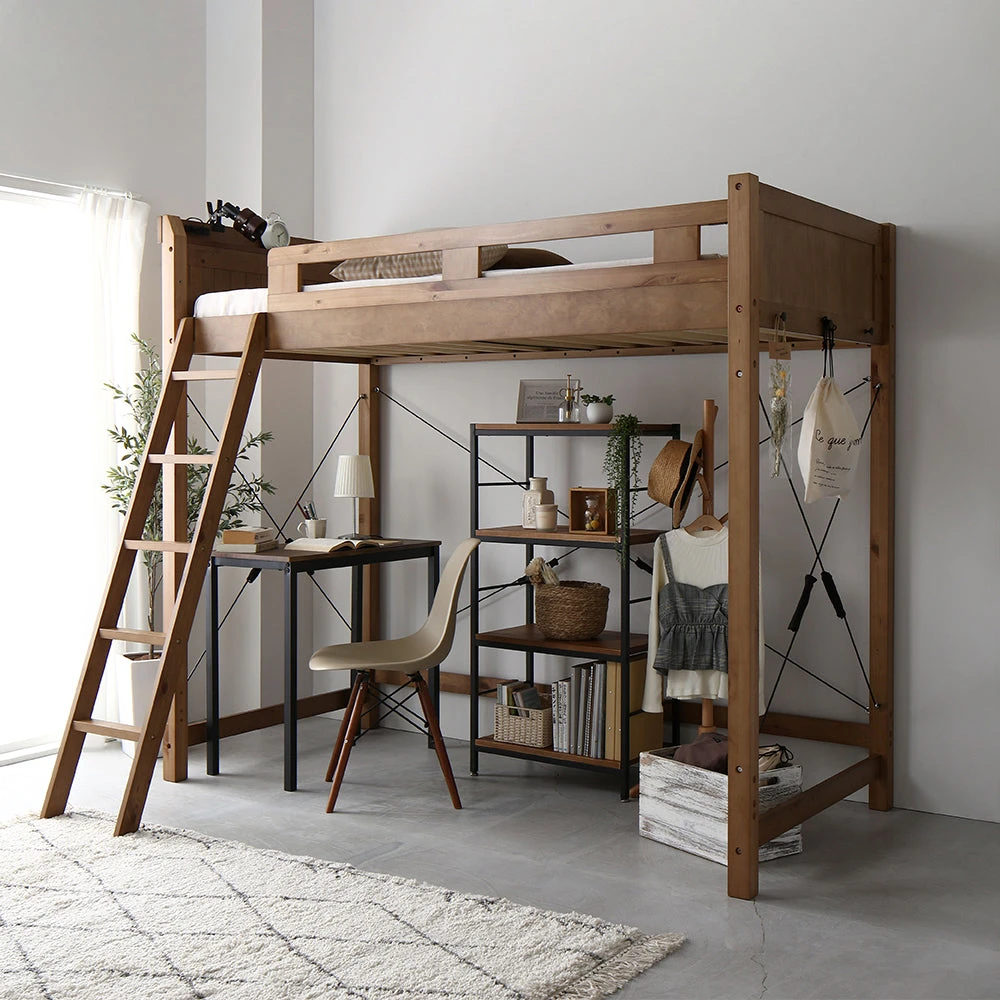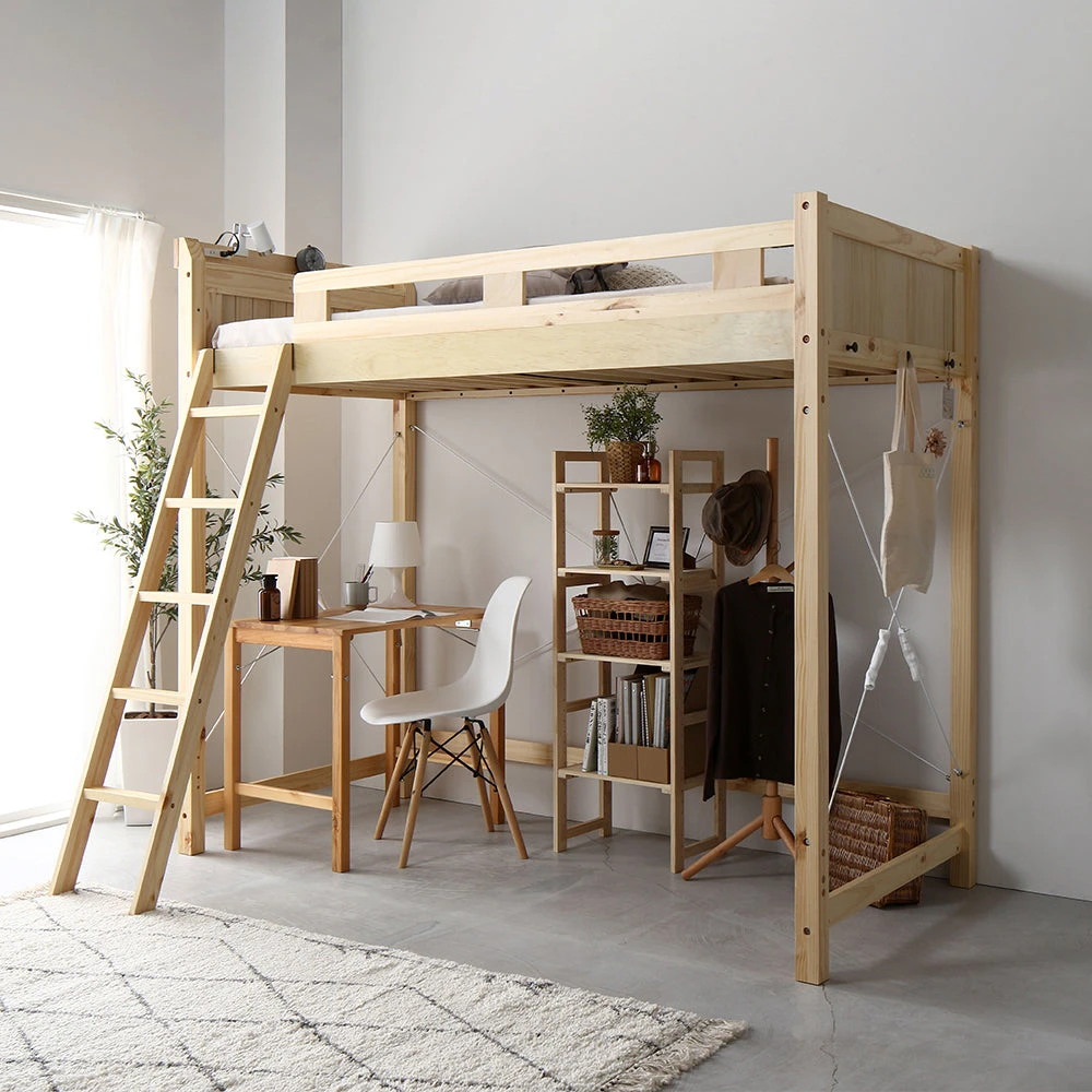 - 木製フレームの質感で、機能性も備えたロフトベッドを探している方