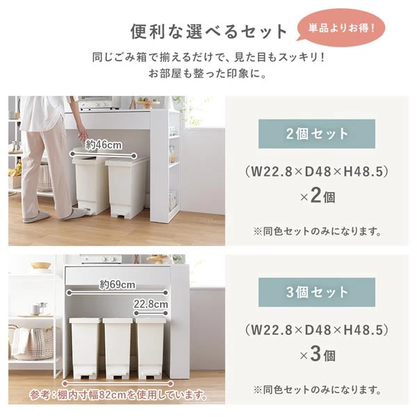 使い方を決めやすい形で、ゴミの分別や整理がしやすくなります。散らかりがちな場所でも片付きやすく、清潔感を保ちやすいです。