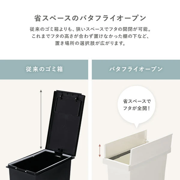ふたが閉まると中が覆われ、気になるニオイが外に広がりにくい仕様です。キッチンやリビングでも置きやすく、空間の快適さを保ちやすくなります。