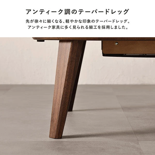 照明の下で豊かに表情を変える木目が、リビングに落ち着きと温かみをもたらします。年中インテリアとして自然に馴染み、くつろぎ時間を心地よく整える円形こたつテーブルです。