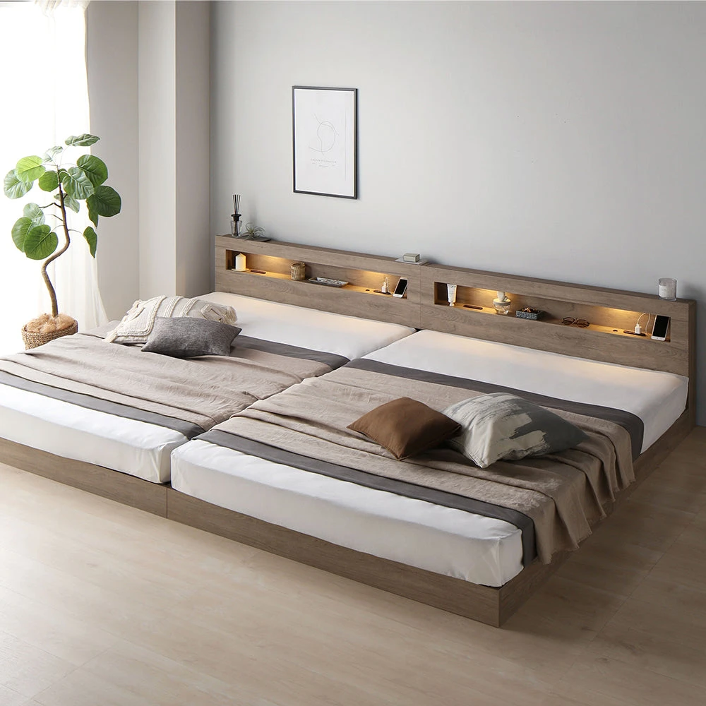 当ページはワイドキング200cm(S+S)サイズ、グレージュカラー、ベッドフレームのみの仕様のページです。