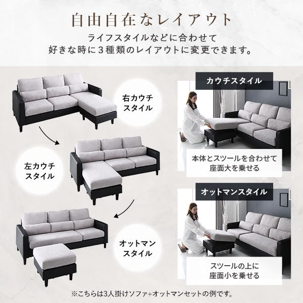 日々の生活動線に寄り添い、直線でもコーナーでも配置しやすい可変レイアウトを採用。来客時は座る場所を増やし、ひとり時間は奥行きを広く使うなどシーンに応じて使い方を切り替えられます。掃除や模様替えもスムーズで、限られたスペースでも視線の抜けを保ちながら心地よい居場所を確保。置き場所を選びにくいバランス設計で、間取りが変わっても長く使い続けやすい一台です。
