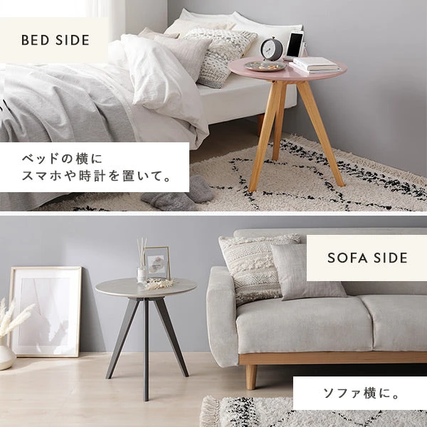 手元に届きやすい実用的な高さで、読書やティータイム、ちょっとした書き物までスムーズにこなせます。やさしい木のぬくもりが空間に落ち着きを与え、視界にも触れ心地にも穏やかな印象をもたらします。軽さを活かして掃除や換気のたびにサッと移動でき、来客時のレイアウト変更も負担になりません。角のない円形は動線を乱しにくく、家族が行き交うリビングでも安心。日常の小さな所作を快適に整える、一台あると頼れるサブテーブルです。