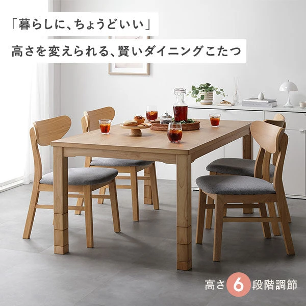リビングの主役として季節を問わず活躍する設計です。座いすでもソファでも使いやすいよう、高さは6段階で細かく調節可能。食事や作業、くつろぎの姿勢に合わせて天板位置を最適化できます。ヒーターはスイッチ後の立ち上がりが早く、寒い時季も待ち時間を抑えてすぐに心地よい温もりを広げます。オフシーズンは通常のリビングテーブルとして違和感なく使えるため、片付け不要で省スペース。暮らしの導線を乱さず、日々の使い勝手と快適性を両立する一台です。