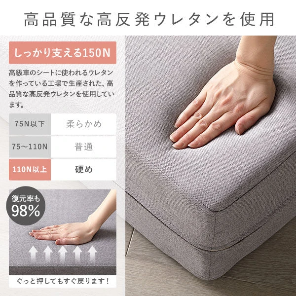 座る心地と眠る心地を一台で満たす設計です。高反発ウレタンが沈み込みを抑えて体圧を分散し、長時間でも姿勢が安定します。ソファからベッドへの切り替えはスムーズで、生活のリズムに合わせて手早く変えられます。動作は静かで夜間の使用も気兼ねありません。コンパクトに置けるため限られたスペースでも動線を確保しやすく、日々のお手入れもシンプルです。耐久性に配慮した構成で、普段づかいに求められる安心感を提供します。