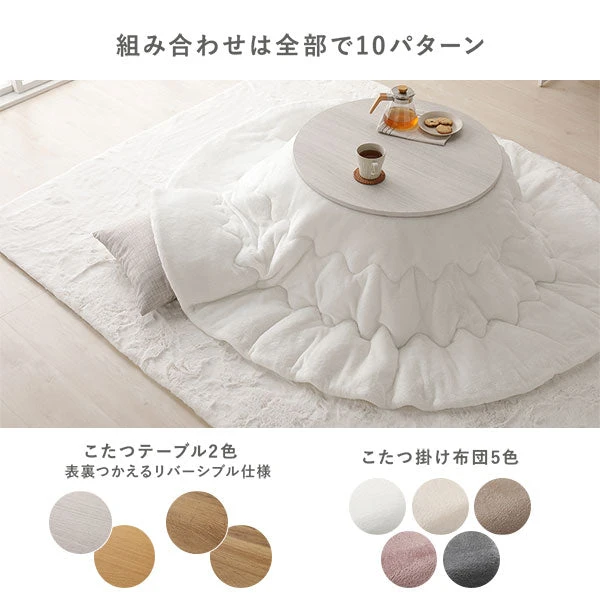 使わない季節は天板を外さずすっきり畳めて、出し入れの手間を減らせる設計です。丸い形は部屋の動線を妨げにくく、角がなく座る位置も自由。起毛のフランネル掛け布団は熱を逃しにくく、触れるたびにやわらかなぬくもりを感じられます。日々の掃除や布団ケアもしやすい配慮で、清潔を保ちやすいのも魅力。限られたスペースでも取り入れやすく、家族や来客と囲む時間にも自然となじみます。季節の切替が軽く、毎日のくつろぎを心地よく支える円形こたつセットです。
