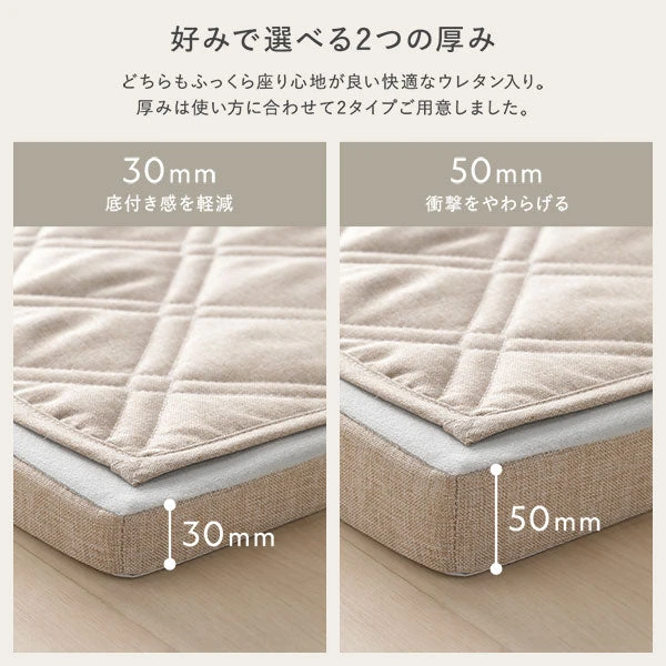 リビングでのくつろぎ、ワークスペースの作業、子ども部屋の遊び場など、使い方に応じて踏み心地を調整可能。体圧や冷えの感じ方を和らげ、日常の動作を快適にします。