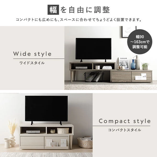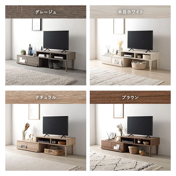 散らかりやすい周辺小物や日用品は引き出しにしまって視界をすっきり、飾りたい物は天板に置いて気軽に見せられる二つの使い方で、日々の片付けが続きます。伸縮や角度の調整に対応しやすく、模様替えや間取り変更にも柔軟。配線が通しやすいつくりは埃がたまりにくく、掃除機やワイパーもかけやすいので手入れが簡単です。木目の表情が空間になじみ、落ち着いた雰囲気を演出。安定感や耐荷重への配慮で日常使いに求められる安心感も確保し、見た目と実用性の両立でリビングを心地よく整えます。
