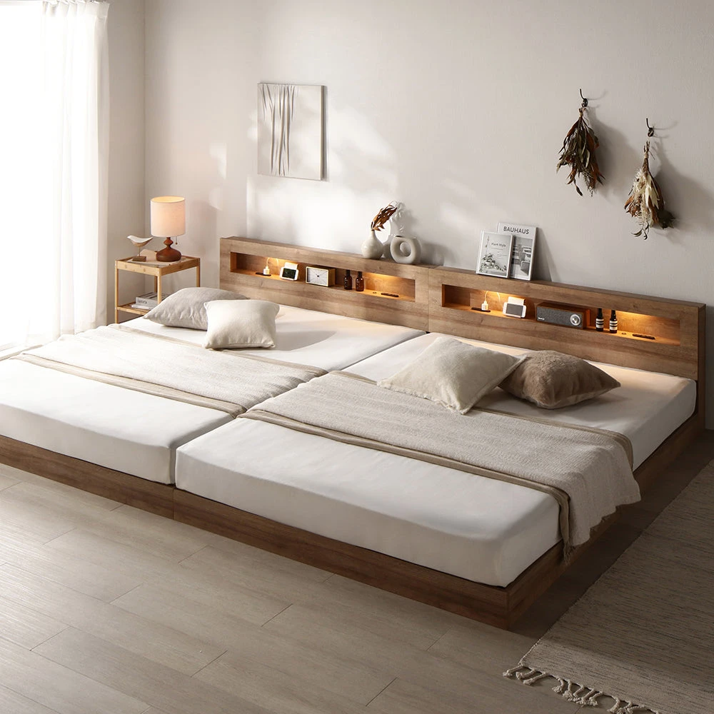 高さを抑えた構成が視線を低く導き、狭めの寝室でも広く感じられます。家具との干渉が少なく通路を確保しやすいので、夜間の移動も落ち着いて行えます。