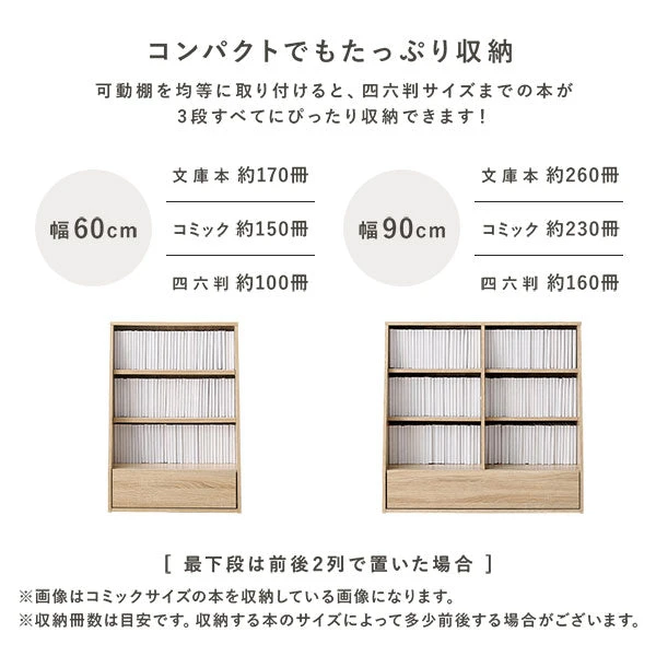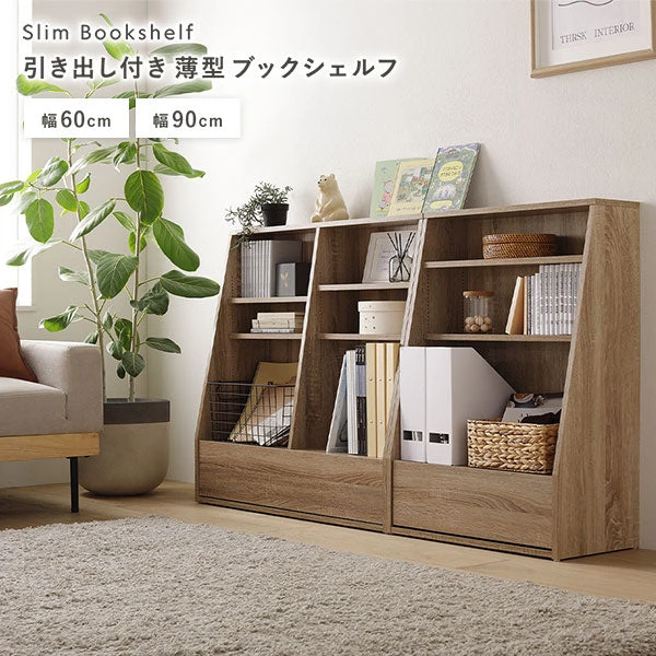 奥行きを抑えた薄型設計で通路を圧迫しにくく、子ども部屋やリビング脇にも置きやすい本棚です。よく使う本は見やすいオープン棚へ、細かな道具や学用品は引き出しにまとめて定位置化。物が戻りやすい導線ができるから、毎日の片付けが習慣になりやすく、散らかりを予防します。たっぷり収納しながら見た目はすっきり。拭き取りやすい面材でお手入れも簡単です。模様替えや掃除の際も取り回しが良く、成長や暮らしの変化に合わせて柔軟に使い続けられます。