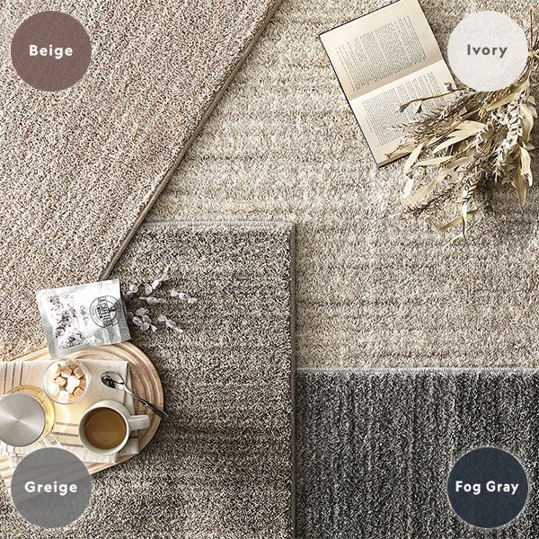 ふんわりとしたミックスパイルが足裏の衝撃を和らげ、素足でも快適な感触。季節を問わない使い心地で、リビングやワークスペースを心地よい空間へ整えます。