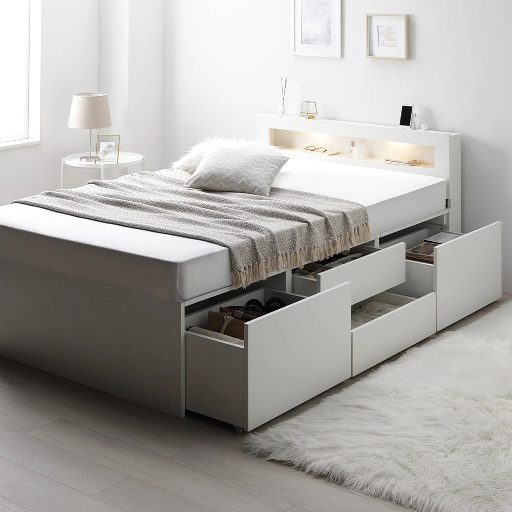 ベッド下のスペースを賢く活用し、よく使う日用品から季節物まで迷わず収まる四杯引き出しの収納力で、散らかりがちな寝室をすっきり保ちます。出し入れしやすい配置は家事動線を乱さず、床面の可視面積が増えることで部屋が広く感じられます。埃が溜まりにくく掃除がしやすい構造は清潔維持に有効で、毎日の片付けが自然と続く環境づくりを後押しします。静かに開閉できる使い心地と安定感に配慮し、見た目も整う落ち着いた寝室へ導きます。