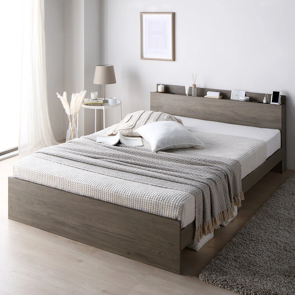三段の高さ調整で寝姿勢と掃除のしやすさを両立し、直線基調の端正なフォルムが空間を広く見せます。枕元には小物を置ける棚と二口コンセントを備え、眼鏡や端末の定位置づくりと充電がスマート。ベッド下は収納として活用でき、季節物やリネンをすっきり整理できます。きしみに配慮した頑丈な構造は日々の使用での安定感と静けさに寄与し、通気性の良い設計が湿気のこもりを抑えて清潔を保ちやすくします。見た目のシンプルさと使い勝手を両立し、長く快適に使える一台をめざしたシリーズ共通の設計です。