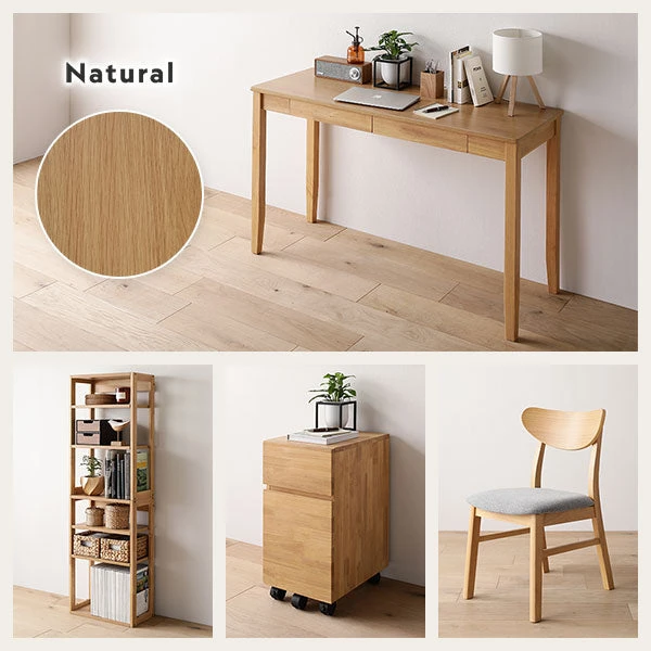 やわらかな質感の天然木が空間になじみ、視界を妨げにくい軽やかな佇まいで置き場所を選びません。必要な作業面を確保しつつ奥行きを抑えた本体は、通路を狭めにくくワークや学習の集中を損ねにくいのが特長です。角や手触りに配慮したつくりで、毎日の出入りや手元の移動もスムーズ。仕上げは日々のお手入れがしやすいよう配慮され、乾拭きを基本に扱えます。届いてすぐに使い始められる完成形で、組み立ての手間や揺れの不安を抑え、リビングやワークスペースなど多様な場所で自然体の使い心地をもたらします。