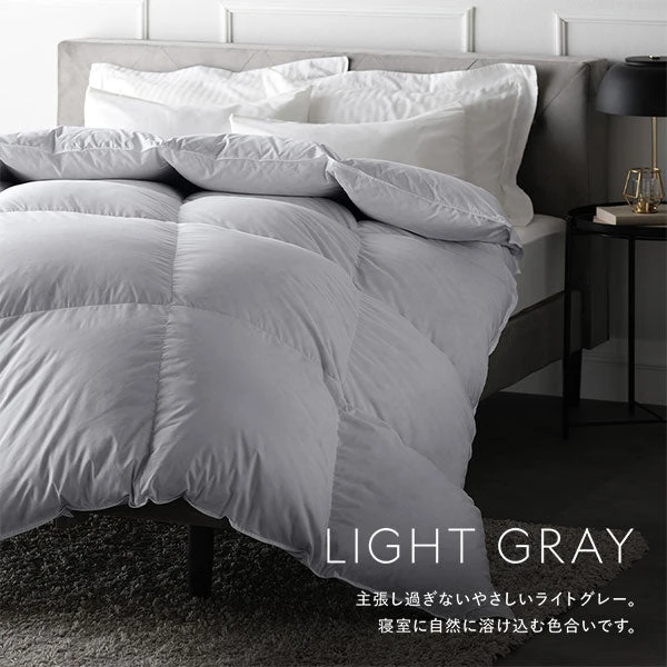 ふっくらと空気を抱え込む贅沢な羽毛量で、就寝中の体をやさしく包み込みます。軽さとなめらかな肌ざわりにこだわり、肩口のすき間もできにくい設計で熱を逃しにくいのが特長です。放湿性に配慮したつくりは蒸れを抑え、朝まで快適なあたたかさをキープ。丁寧な国内仕立てにより、清潔に保ちやすく日々のお手入れもシンプルです。季節の変わり目にも使いやすい安定した保温性で、眠りの質を静かに底上げします。毎日の寝室に上品なふくらみとやすらぎをもたらす一枚です。