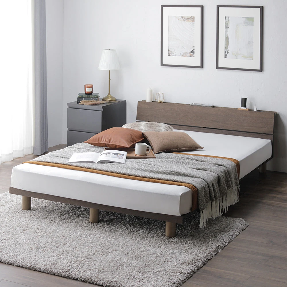 天然木の質感で寝室が落ち着く使いやすい3段階高さ調節ステージベッド セミダブル ウォールナットブラウン 日本製ポケットコイルマットレス(レギュラー)付き