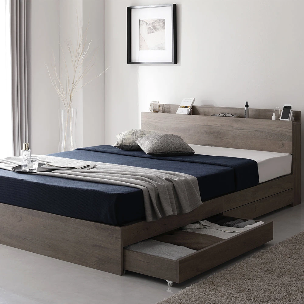 使う物を近くにしまえて床面を広く保てる収納付きベッド シングル シャビーオーク ベッドフレームのみ