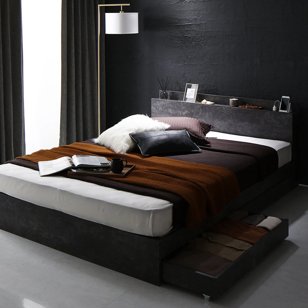 使う物を近くにしまえて床面を広く保てる収納付きベッド シングル ヴィンテージブラウン ベッドフレームのみ
