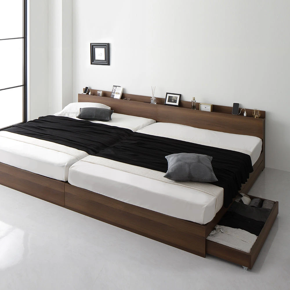 使う物を近くにしまえて床面を広く保てる収納付きベッド ワイドキング200cm(S+S) ブラウン ベッドフレームのみ