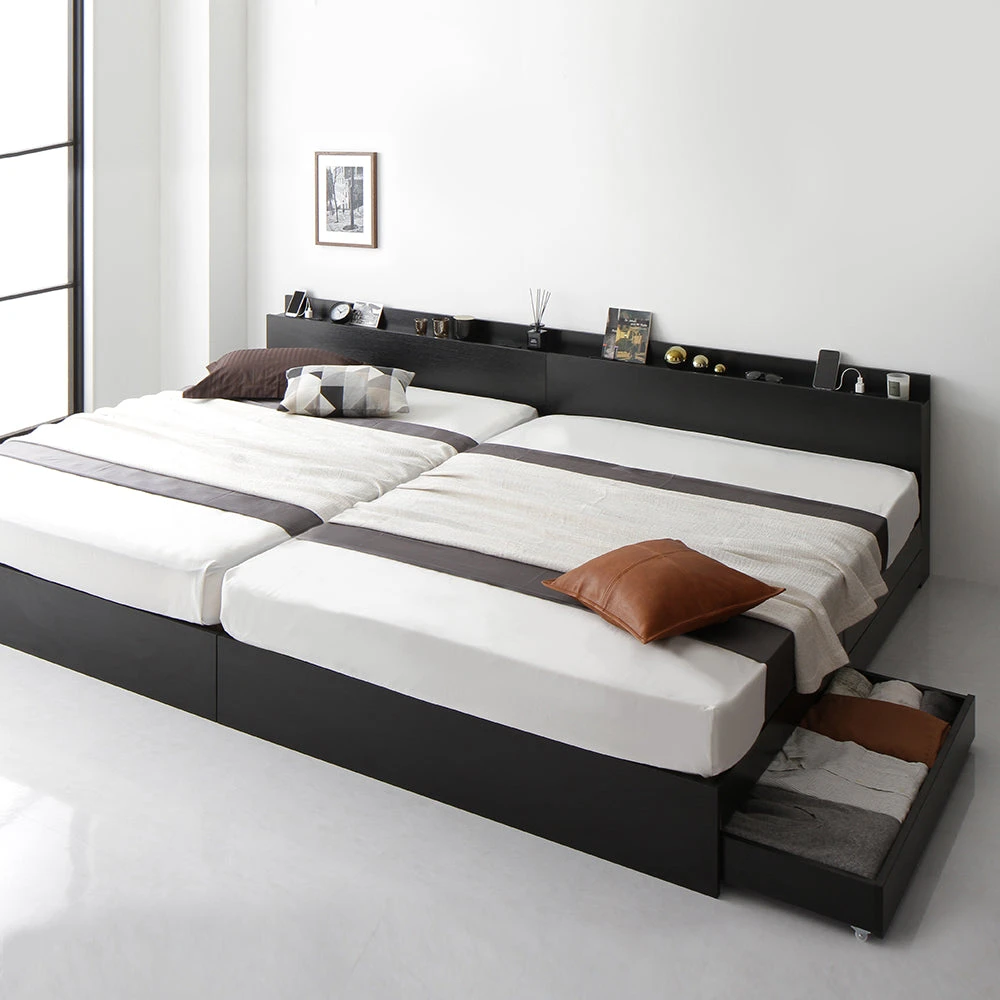 使う物を近くにしまえて床面を広く保てる収納付きベッド ワイドキング200cm(S+S) ブラック ベッドフレームのみ