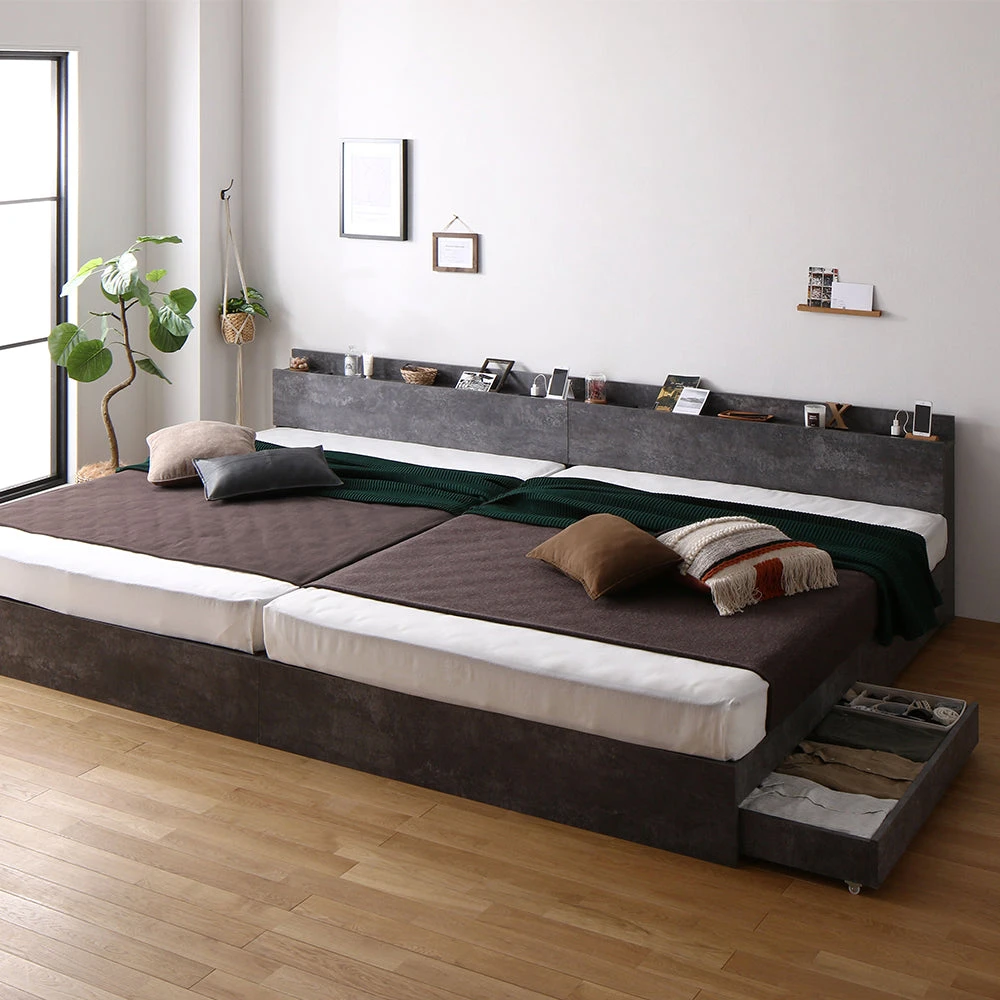 使う物を近くにしまえて床面を広く保てる収納付きベッド ワイドキング200cm(S+S) ストーングレー ベッドフレームのみ